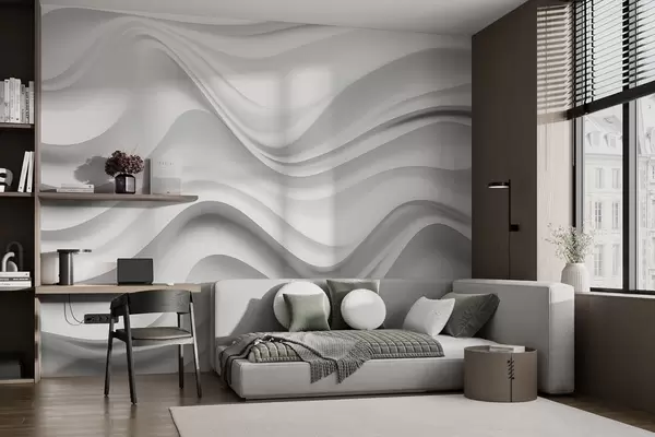 Τοιχογραφίες Ασπρόμαυρη αφηρημένη τρισδιάστατη σύνθεση με απαλά κύματα Nr. w09506