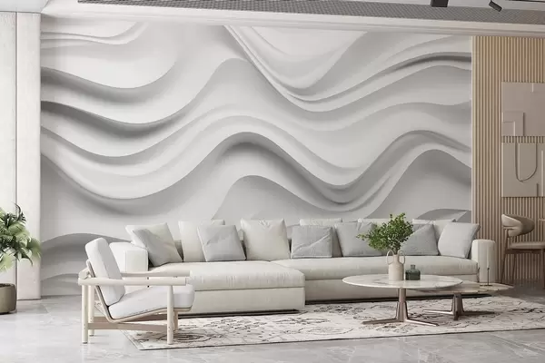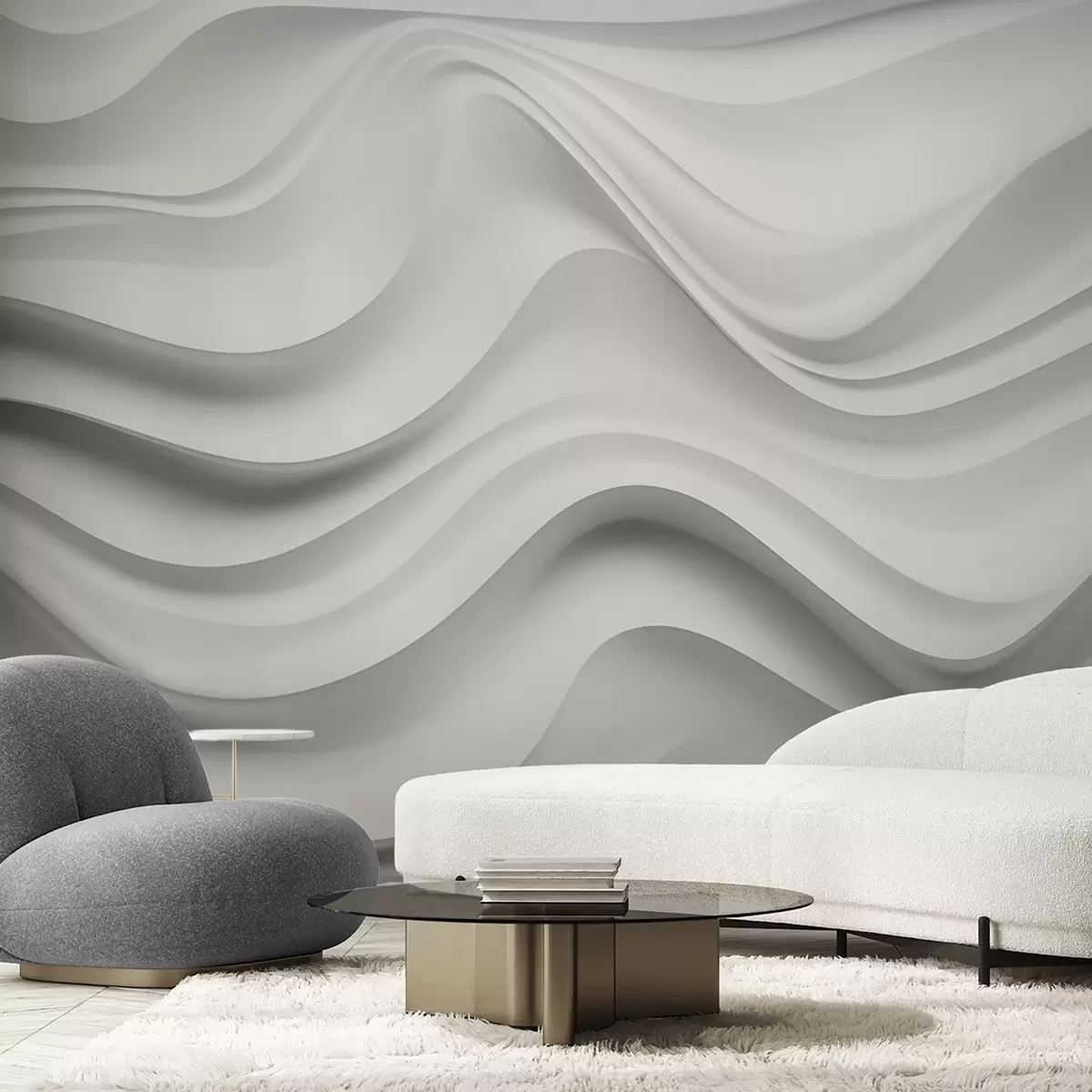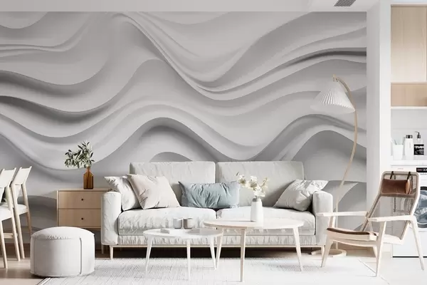 Τοιχογραφίες Ασπρόμαυρη αφηρημένη τρισδιάστατη σύνθεση με απαλά κύματα Nr. w09506