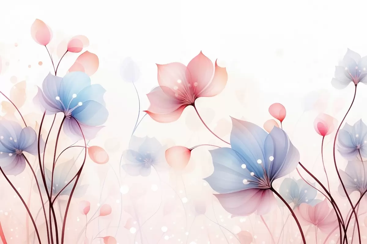 Τοιχογραφίες Λεπτά ροζ-μπλε λουλούδια — αέρινη χλωρίδα σε λευκό φόντο ακουαρέλας Nr. w09507