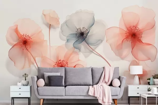Τοιχογραφίες Διαφανή λουλούδια σε κόκκινες και μπλε αποχρώσεις Nr. w09515
