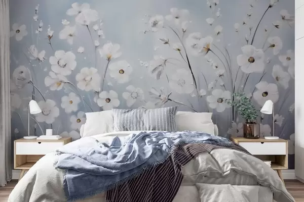 Τοιχογραφίες Λευκά λουλούδια σε μπλε ουρανό σε στυλ ελαιογραφίας Nr. w09516