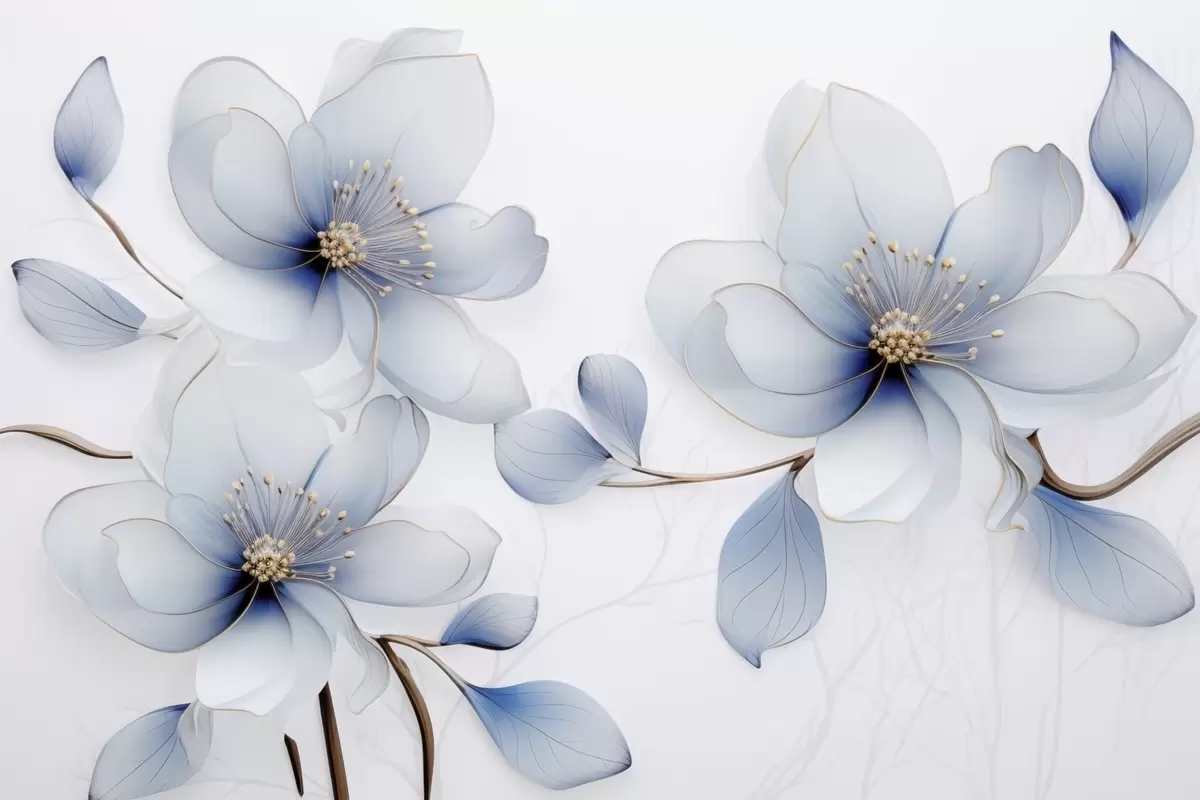 Τοιχογραφίες Κομψή σύνθεση με άνθη μανόλιας σε αποχρώσεις του μπλε Nr. w09520