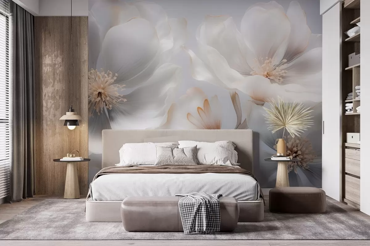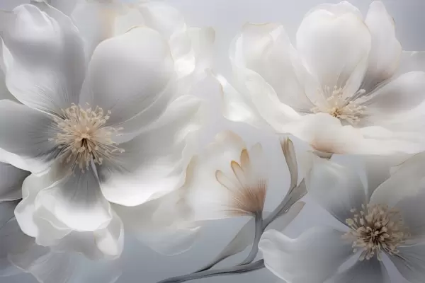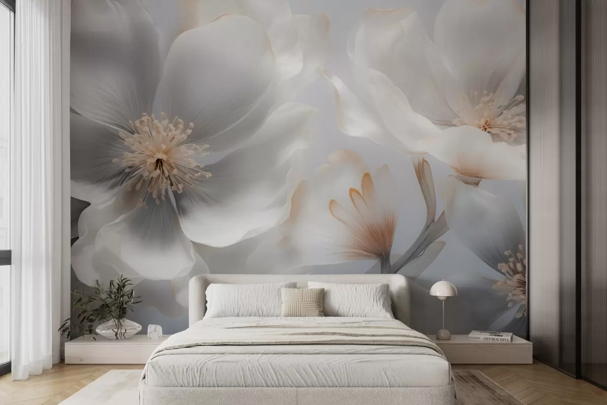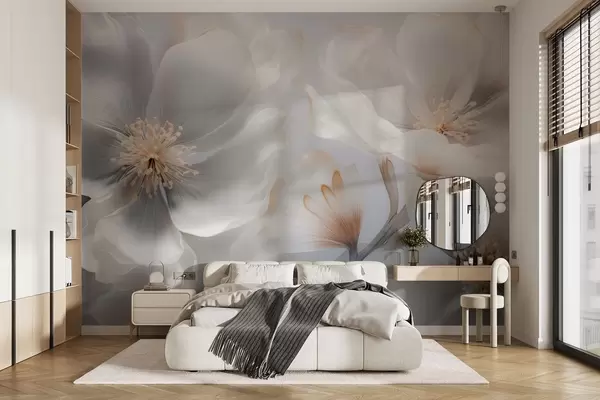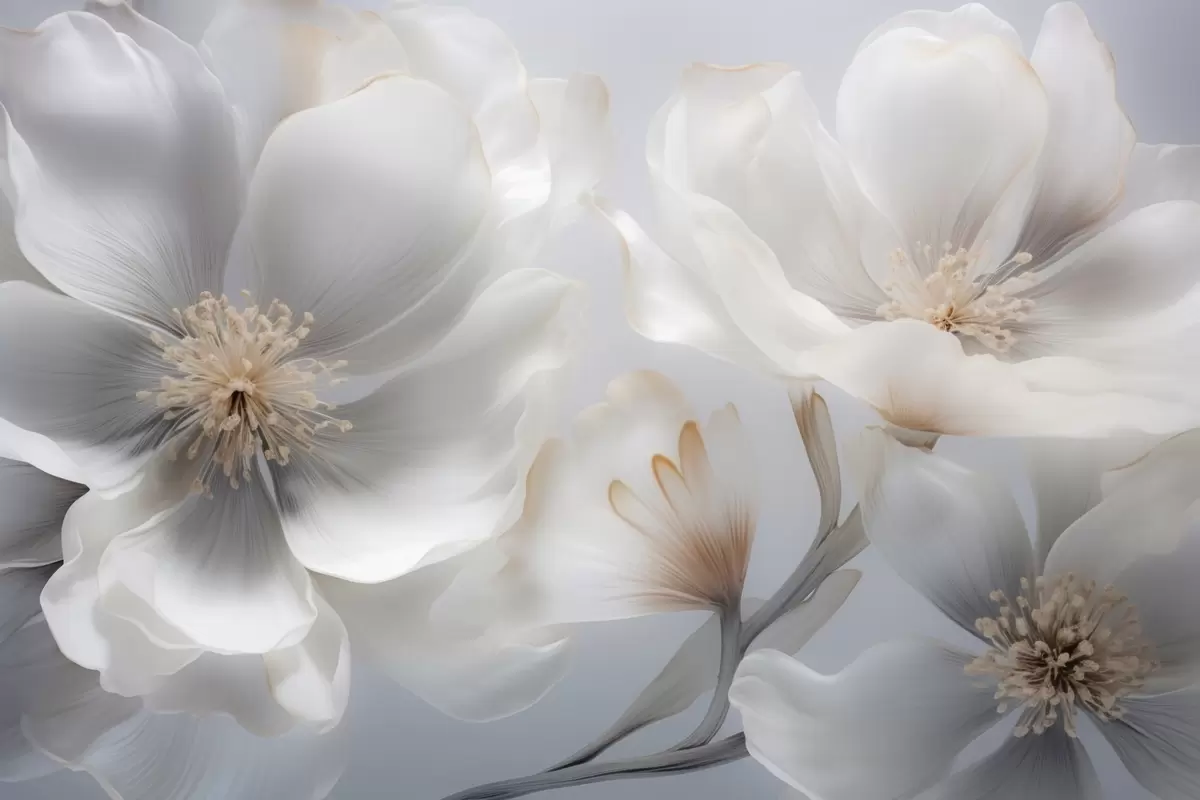 Τοιχογραφίες Λουλούδια με περλέ χρώμα σε αποχρώσεις μπεζ-γκρι και γαλακτώδες κρεμ Nr. w09527