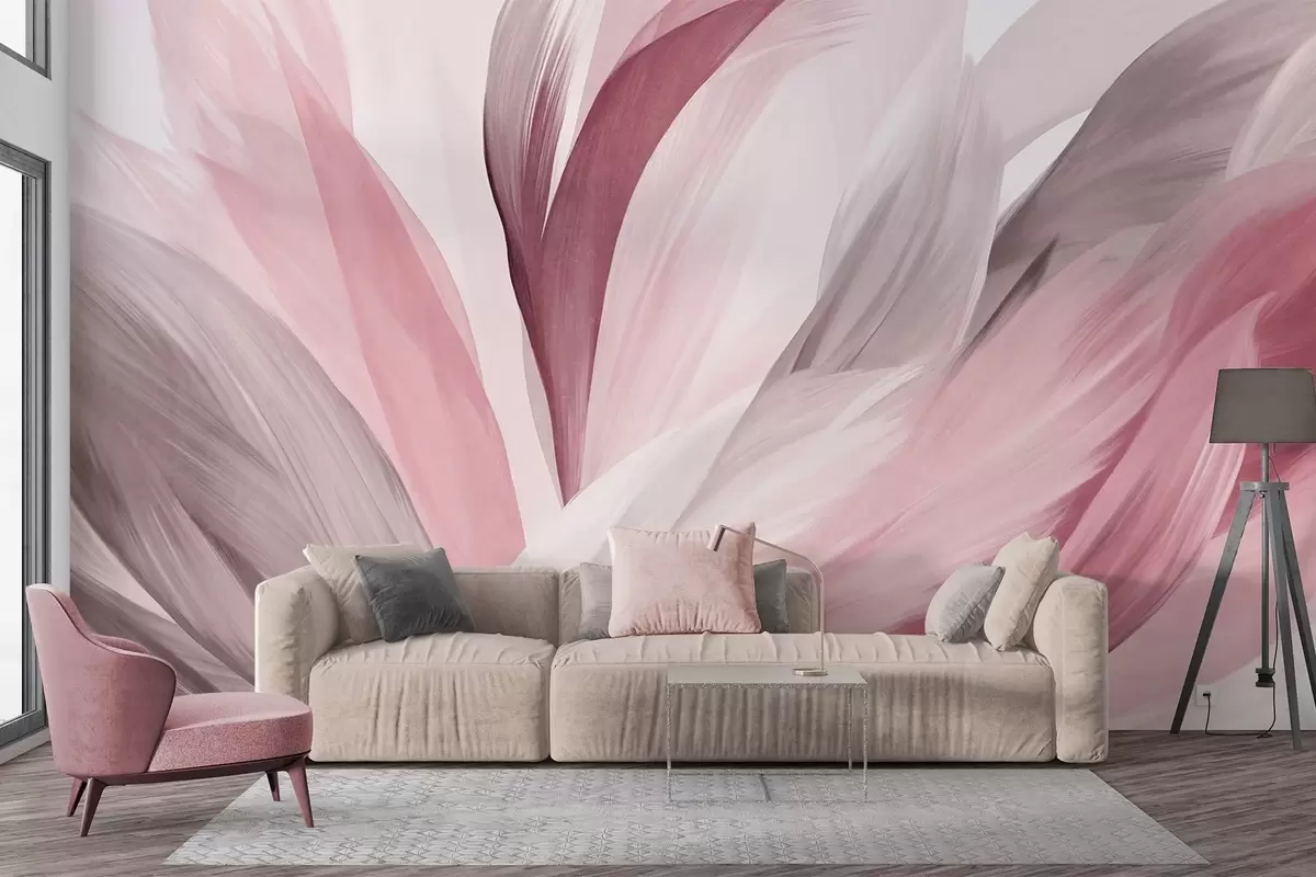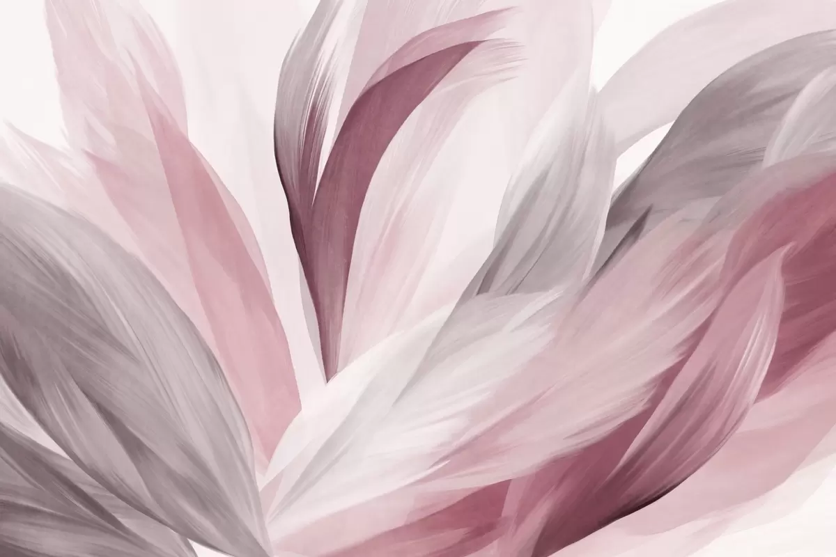 Τοιχογραφίες Αφηρημένα φτερά με υφή σε ροζ, λευκό και γκρι χρώμα και διάφορες αποχρώσεις, που επικαλύπτονται σε λευκό φόντο Nr. w09531v2