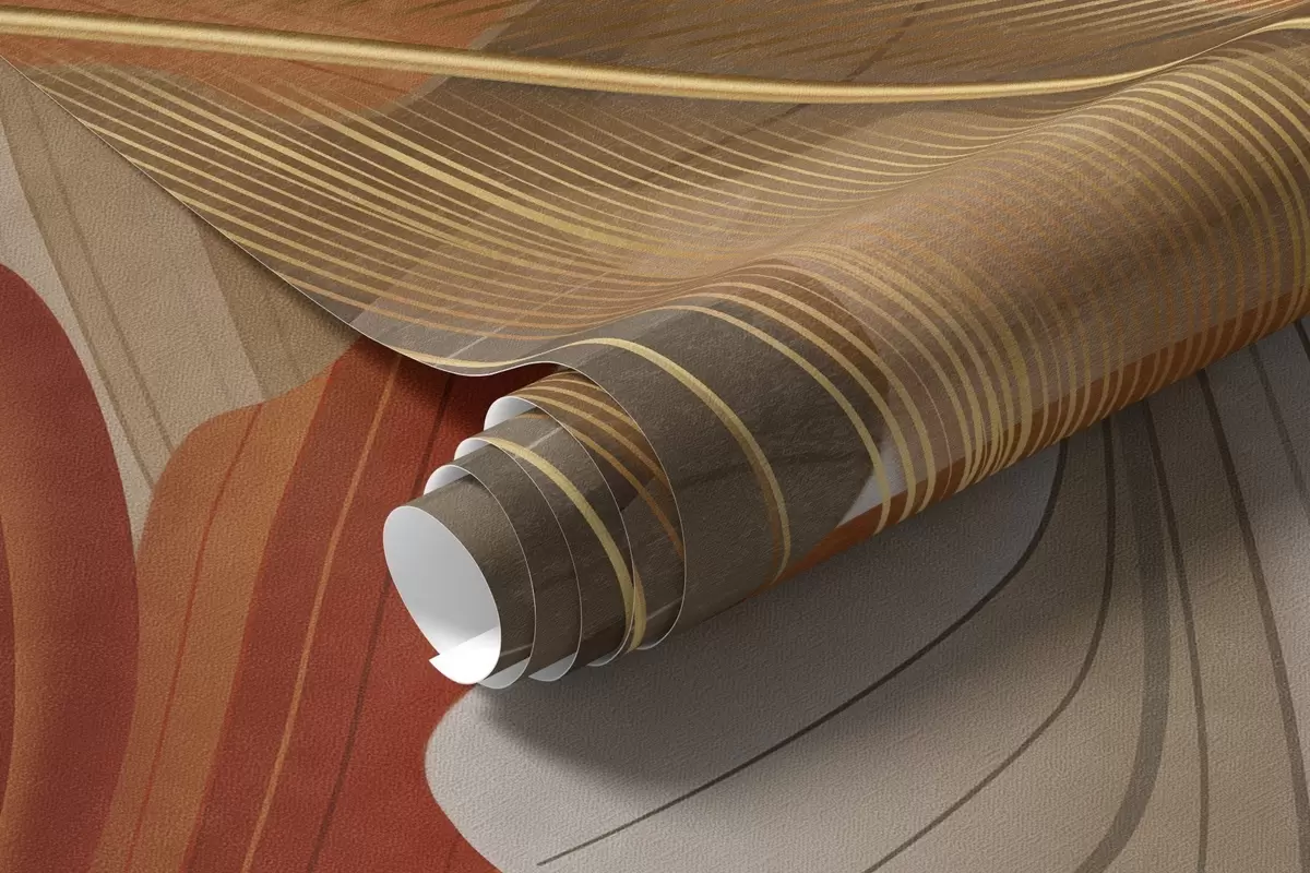 Τοιχογραφίες Αφηρημένα, υφασμάτινα, μεγάλα, ρέοντα σχήματα σε κρεμ και σκουριασμένα χρώματα με λεπτεπίλεπτα, κίτρινα, μπεζ και καφέ φτερά. Nr. w09549