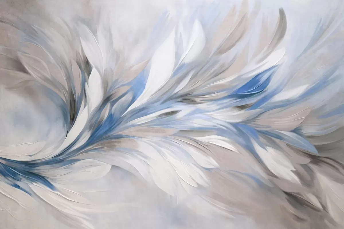 Τοιχογραφίες Αφηρημένο ζωγραφικό στυλ με λευκές, μπλε και γκρι πινελιές με υφή και απαλό, ανοιχτόχρωμο φόντο. Nr. w09552v1