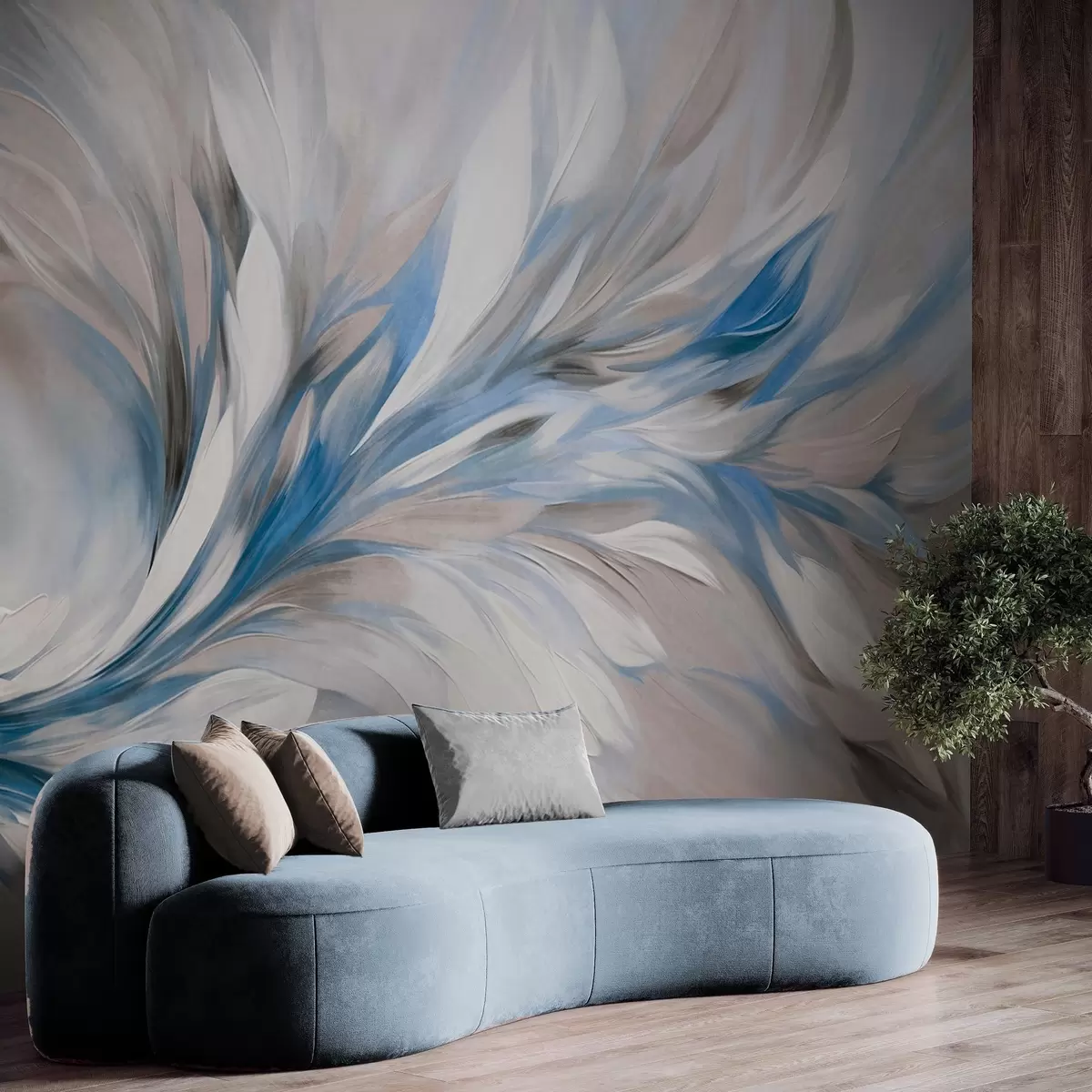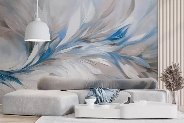 Τοιχογραφίες Αφηρημένο ζωγραφικό στυλ με λευκές, μπλε και γκρι πινελιές με υφή και απαλό, ανοιχτόχρωμο φόντο Nr. w09552v1