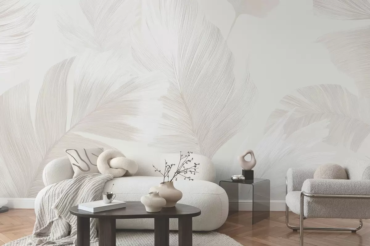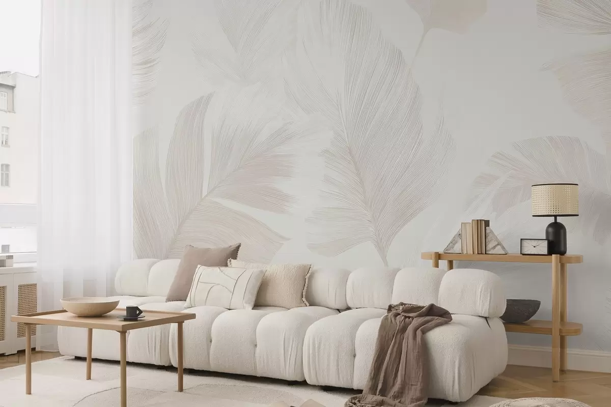 Τοιχογραφίες Απαλά φτερά σε αποχρώσεις του μπεζ Nr. w09563