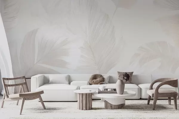 Τοιχογραφίες Απαλά φτερά σε αποχρώσεις του μπεζ Nr. w09563