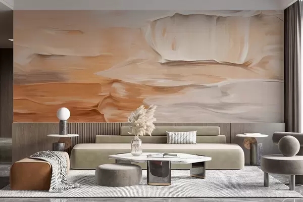 Τοιχογραφίες Αφηρημένες πινελιές με υφή σε ζεστούς γήινους τόνους του μπεζ, του κρεμ και του καφέ, μοντέρνα τέχνη Nr. w09588