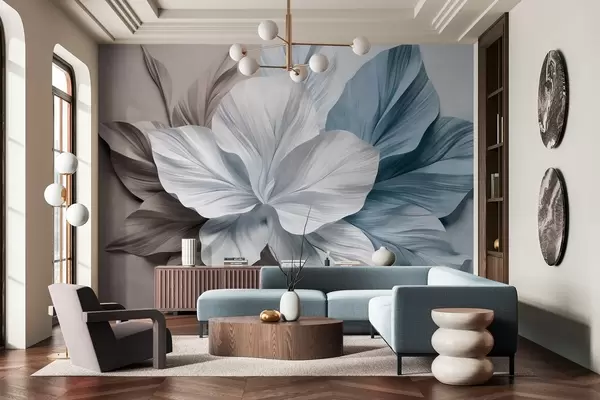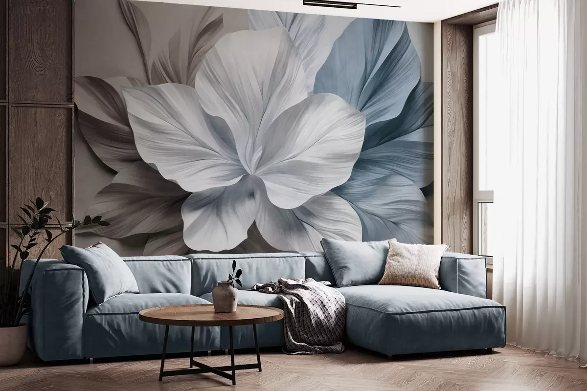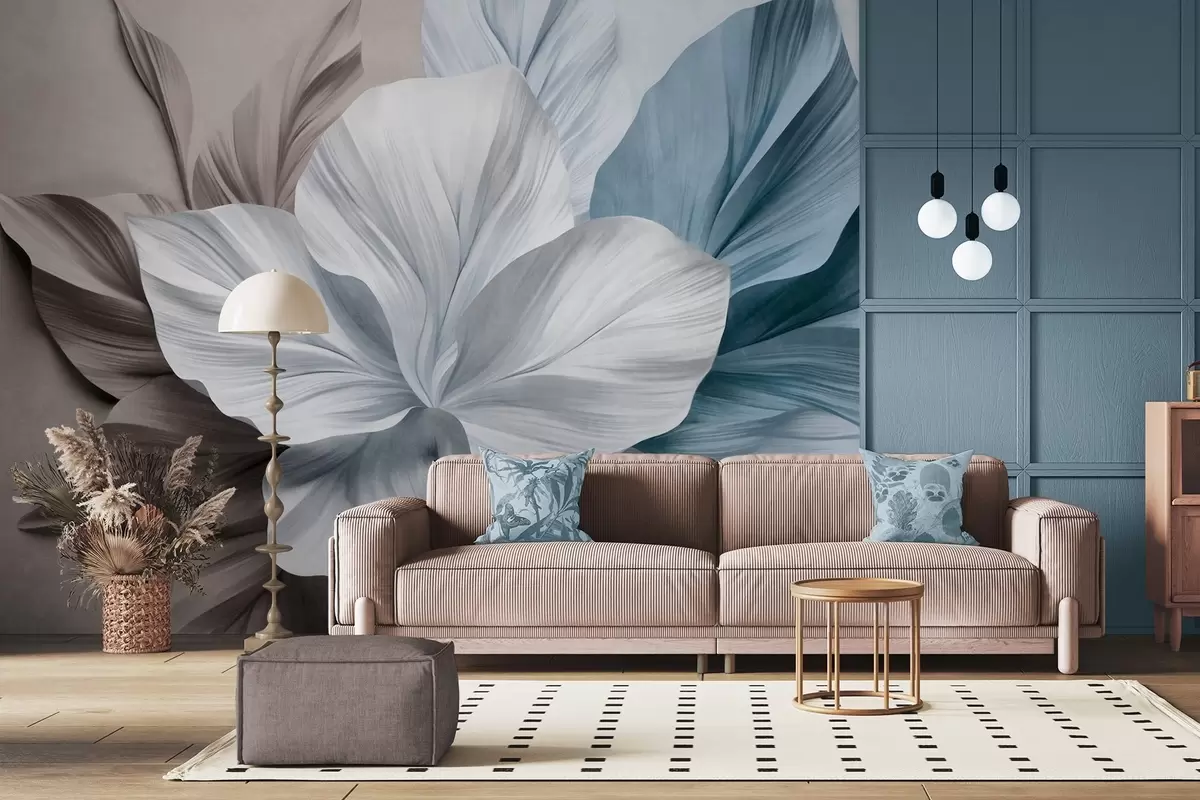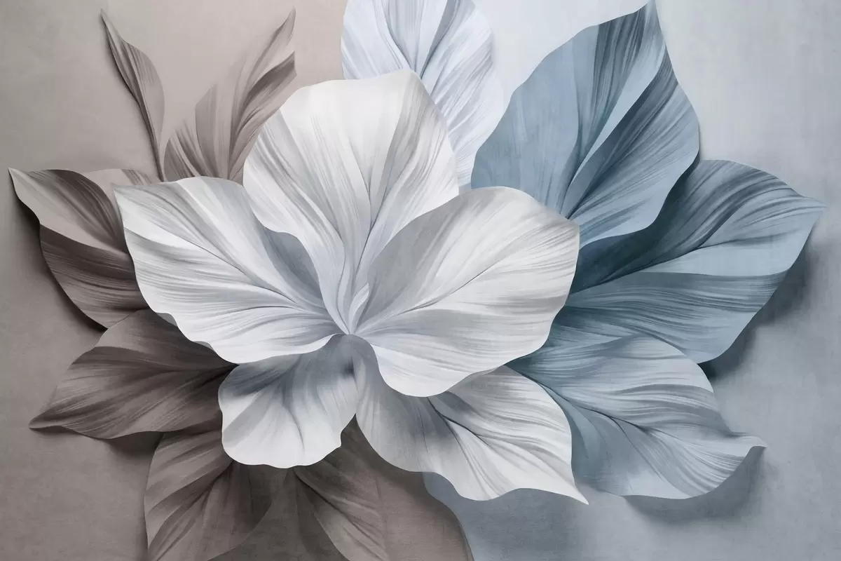 Τοιχογραφίες Αφηρημένο λουλούδι με πολλά πέταλα και φύλλα με υφή σε αποχρώσεις του καφέ και του μπλε, απαλό φόντο Nr. w09604v1
