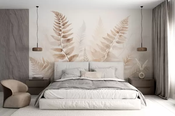 Τοιχογραφίες Αποξηραμένα φύλλα φτέρης με υφή σε διάφορες αποχρώσεις του καφέ, με απαλό, ανοιχτό φόντο σε στυλ ακουαρέλας. Nr. w09615