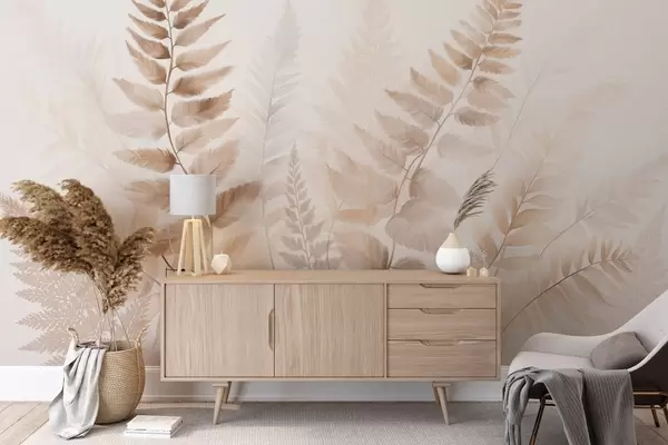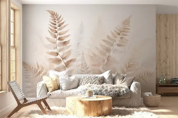 Τοιχογραφίες Αποξηραμένα φύλλα φτέρης με υφή σε διάφορες αποχρώσεις του καφέ, με απαλό, ανοιχτό φόντο σε στυλ ακουαρέλας. Nr. w09615