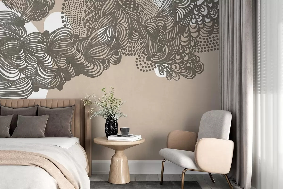 Τοιχογραφίες Αφηρημένο σχέδιο με υφή σε μπεζ φόντο, με περίπλοκες γραμμές και κουκκιδωτές υφές. Nr. w09621
