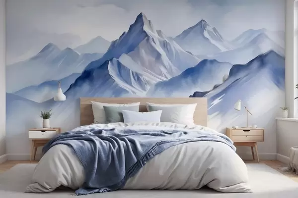 Τοιχογραφίες Χιονισμένα βουνά με υφή, απαλό εφέ ακουαρέλας και παλέτα μπλε και λευκού χρώματος Nr. w09630
