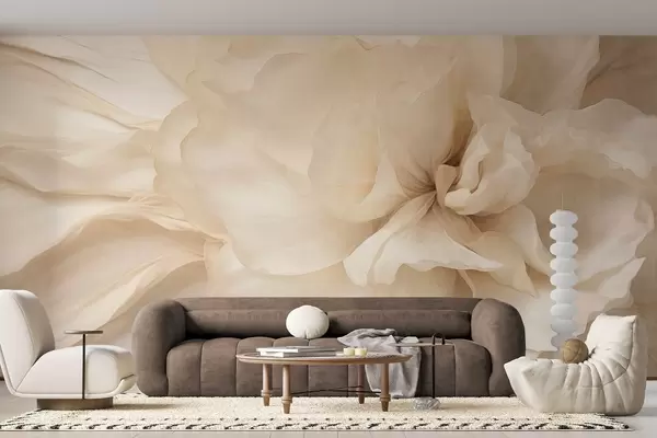 Τοιχογραφίες Λεπτό, ανοιχτόχρωμο λουλούδι με διαφανή πέταλα και απαλό αφηρημένο φόντο Nr. w09632