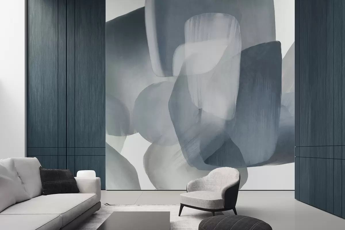 Τοιχογραφίες Αφηρημένα σχήματα με υφή σε απαλά μπλε και γκρι χρώματα, με απαλές άκρες και επικαλυπτόμενα στρώματα Nr. w09642v1