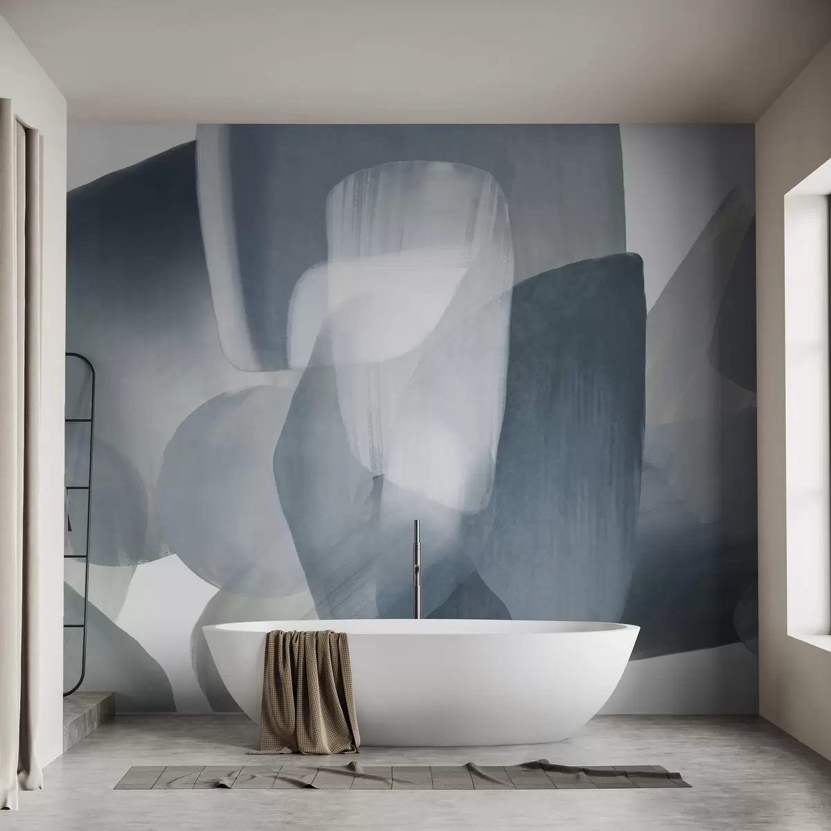 Τοιχογραφίες Αφηρημένα σχήματα με υφή σε απαλά μπλε και γκρι χρώματα, με απαλές άκρες και επικαλυπτόμενα στρώματα Nr. w09642v1