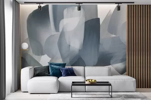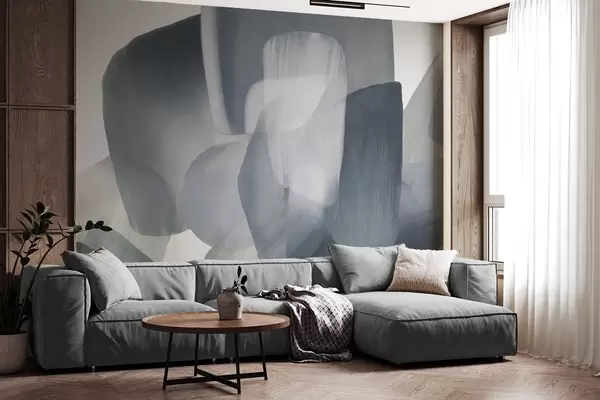 Τοιχογραφίες Αφηρημένα σχήματα με υφή σε απαλά μπλε και γκρι χρώματα, με απαλές άκρες και επικαλυπτόμενα στρώματα Nr. w09642v1