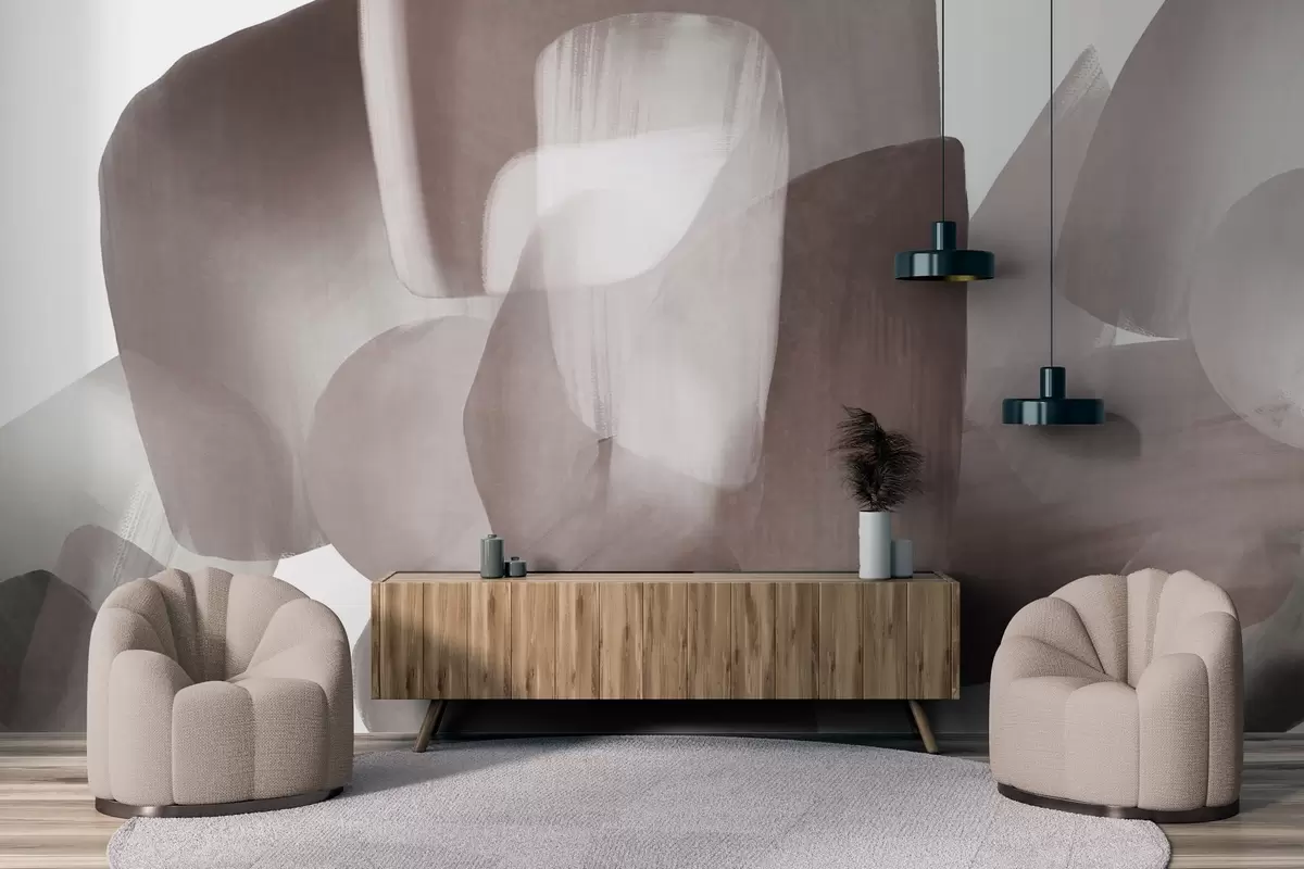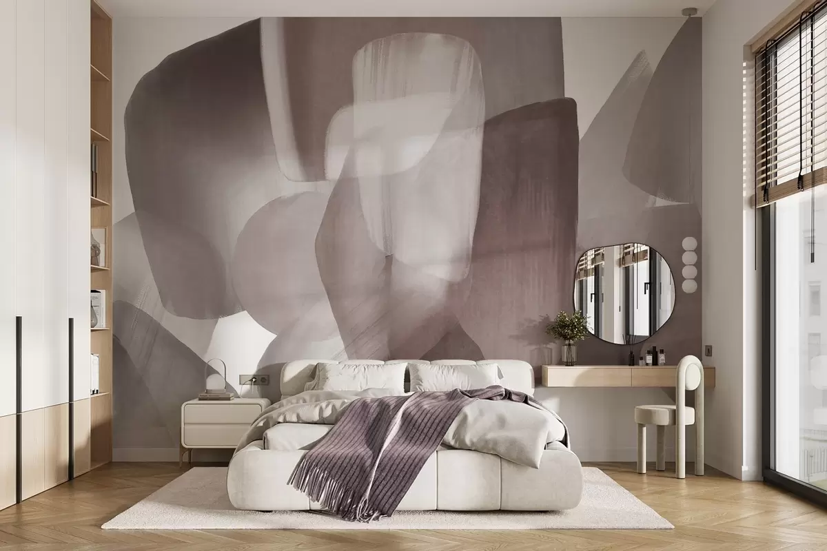 Τοιχογραφίες Αφηρημένα σχήματα με υφή σε απαλά μπορντό και γκρι χρώματα, με απαλά άκρα και επικαλυπτόμενα στρώματα Nr. w09642v2