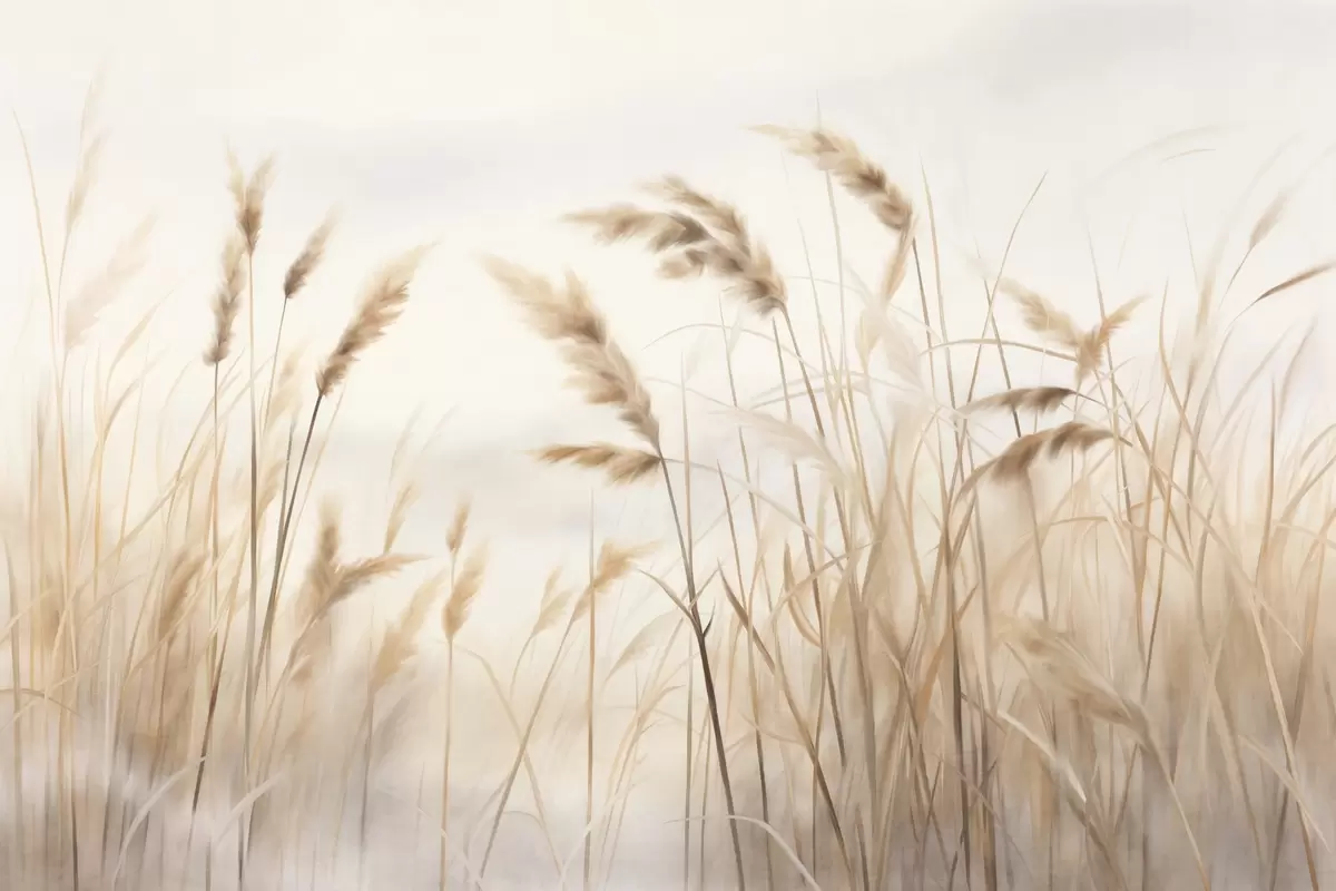 Τοιχογραφίες Ψηλό, υφασμάτινο ξερό χορτάρι με στάχυα σιταριού στο χωράφι, σε απαλό, ανοιχτόχρωμο φόντο. Nr. w09648