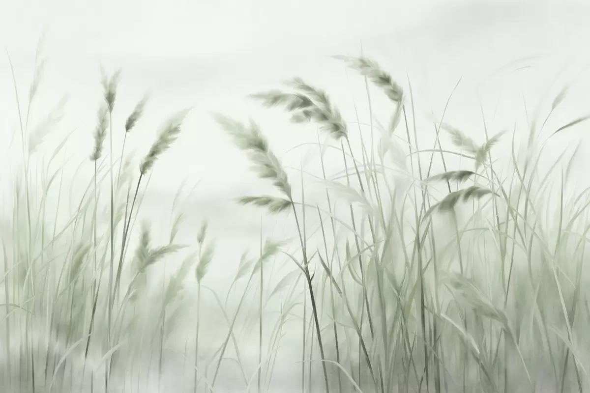 Τοιχογραφίες Ψηλό, υφασμάτινο ξερό χορτάρι με στάχυα σιταριού στο χωράφι, σε απαλό, ανοιχτόχρωμο φόντο. Nr. w09648v1