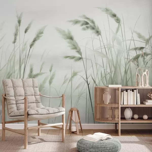 Τοιχογραφίες Ψηλό, υφασμάτινο ξερό χορτάρι με στάχυα σιταριού στο χωράφι, σε απαλό, ανοιχτόχρωμο φόντο. Nr. w09648v1