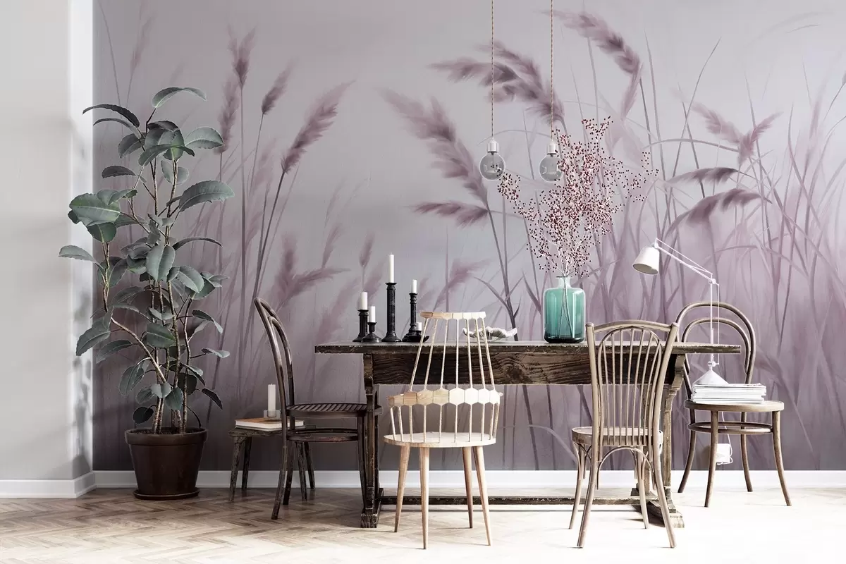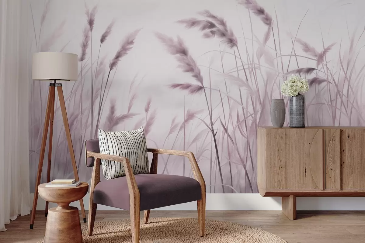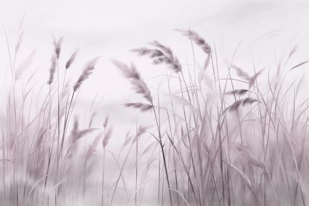 Τοιχογραφίες Ψηλό, υφασμάτινο ξερό χορτάρι με στάχυα σιταριού στο χωράφι, σε απαλό, ανοιχτόχρωμο φόντο. Nr. w09648v2
