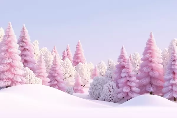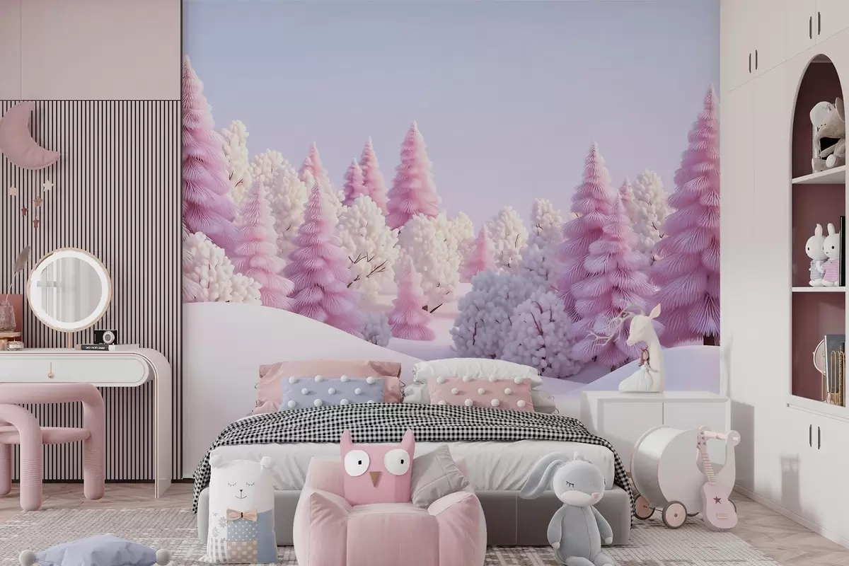 Τοιχογραφίες Χιονισμένο χειμερινό δάσος σε ροζ αποχρώσεις Nr. w09654