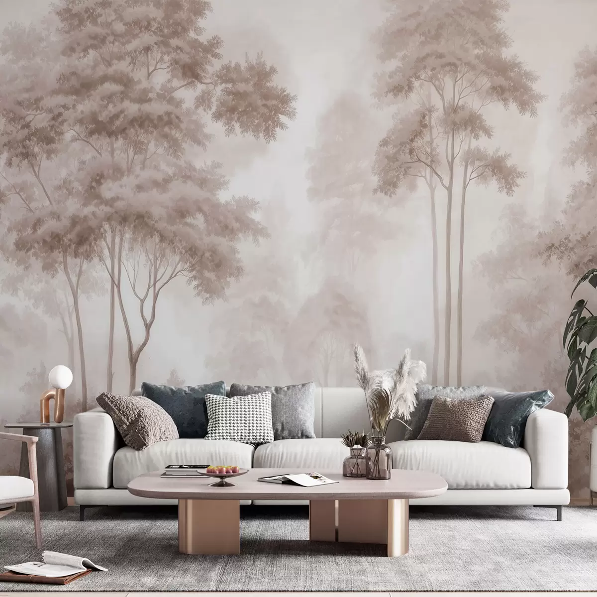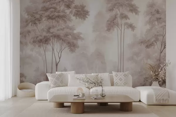 Τοιχογραφίες Αφηρημένο δασικό τοπίο σε καπνιστούς μπεζ τόνους με αίσθηση βάθους Nr. w09657