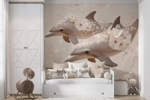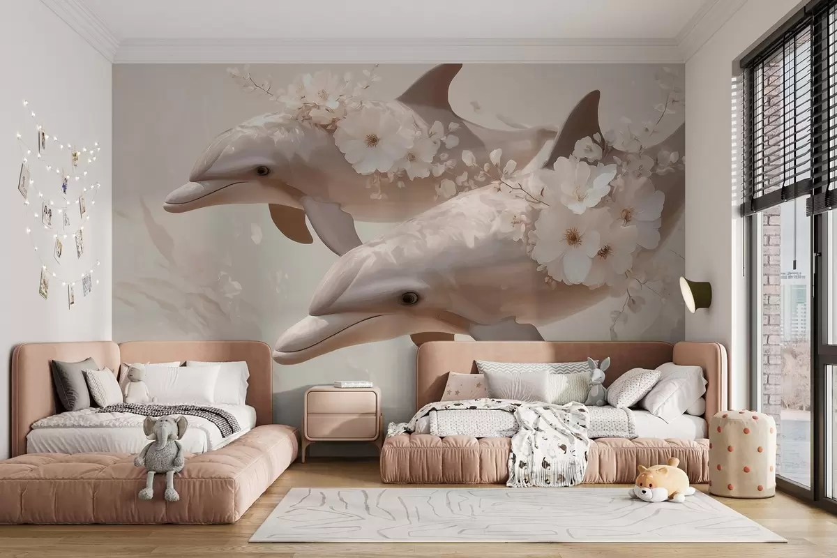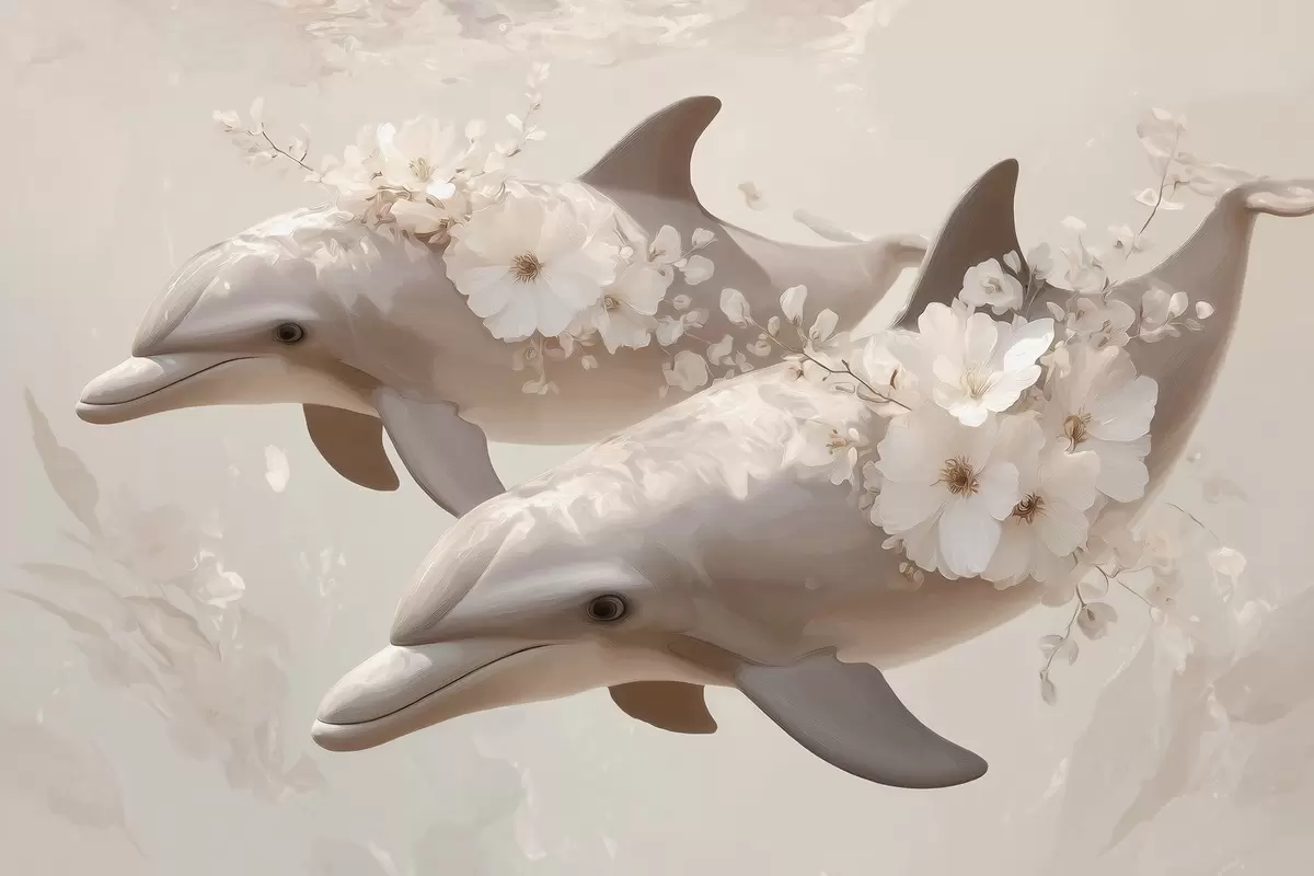 Τοιχογραφίες Δελφίνια σε έναν ωκεανό από λεπτεπίλεπτα λουλούδια και απαλό φως Nr. w09666