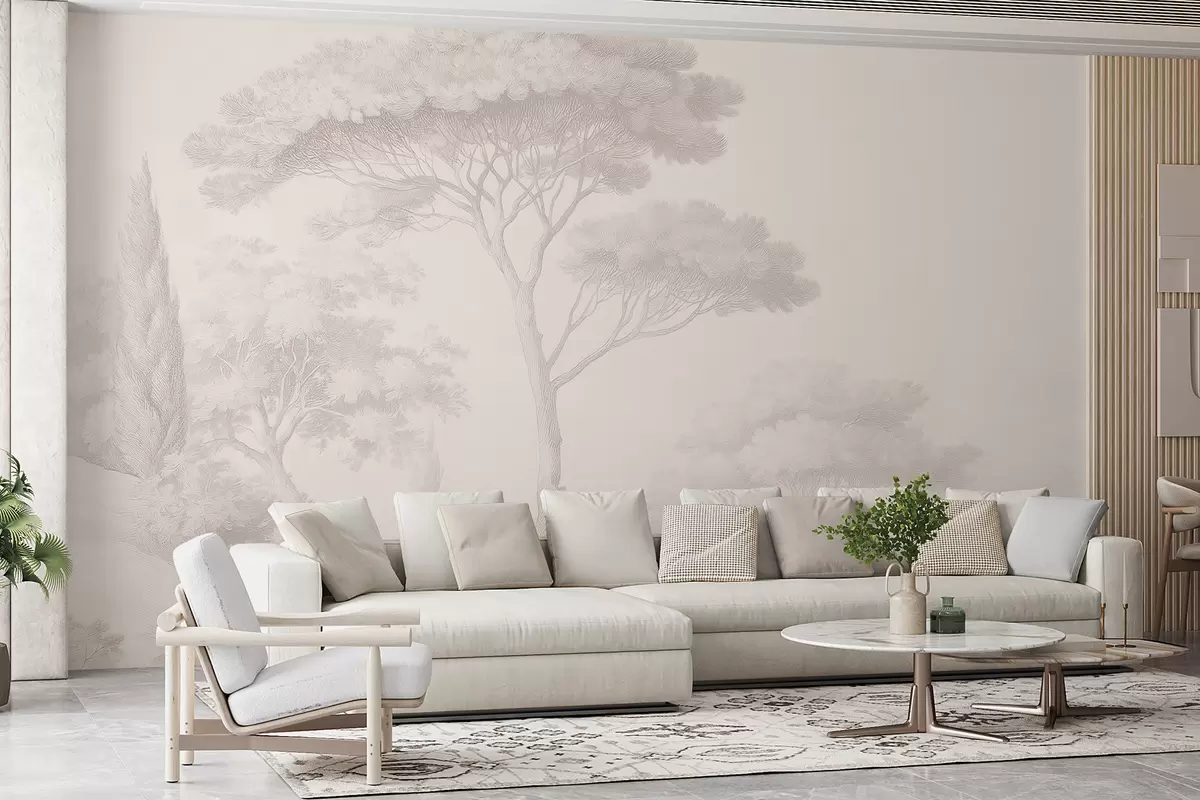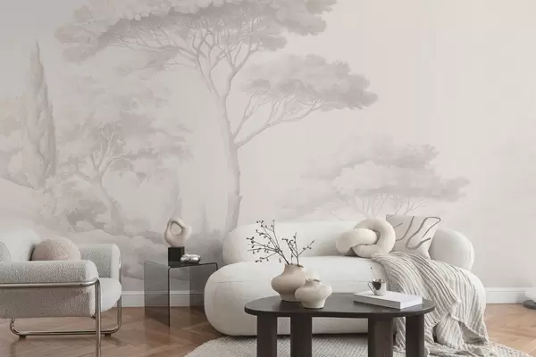 Τοιχογραφίες Ήρεμο δασικό τοπίο σε μπεζ χρωματική παλέτα Nr. w09685