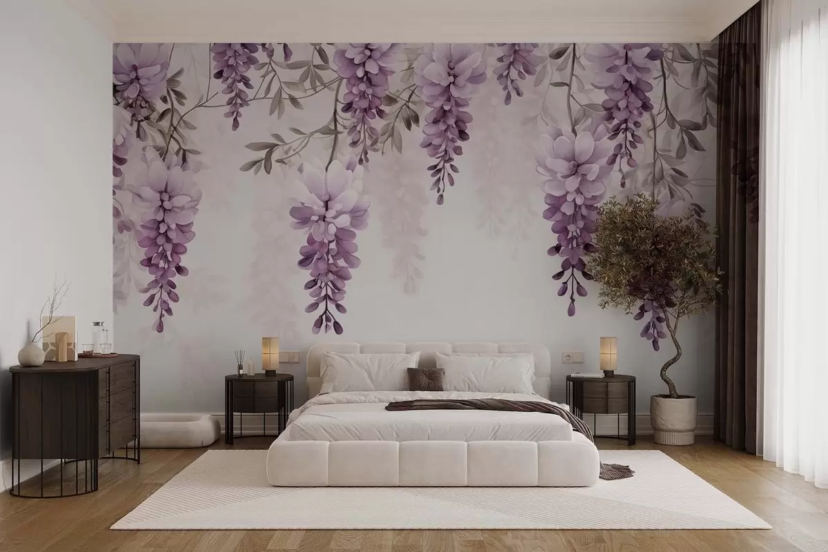 Τοιχογραφίες Λεπτά, μεγάλα κλαδιά λεβάντας κρεμασμένα στον τοίχο, απομίμηση ακουαρέλας Nr. w09690