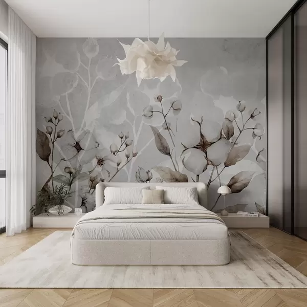 Τοιχογραφίες Μεγάλα βαμβακερά λουλούδια σε ανοιχτό γκρι φόντο Nr. w09691