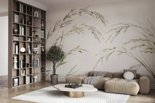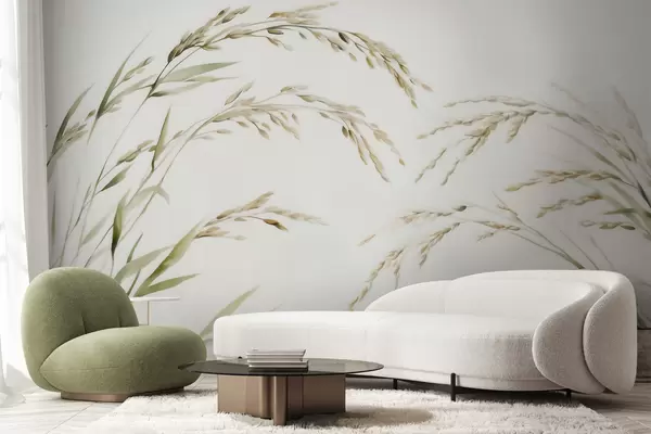 Τοιχογραφίες Λεπτά αγρωστώδη σε παστέλ αποχρώσεις με απαλό εφέ ακουαρέλας Nr. w09712