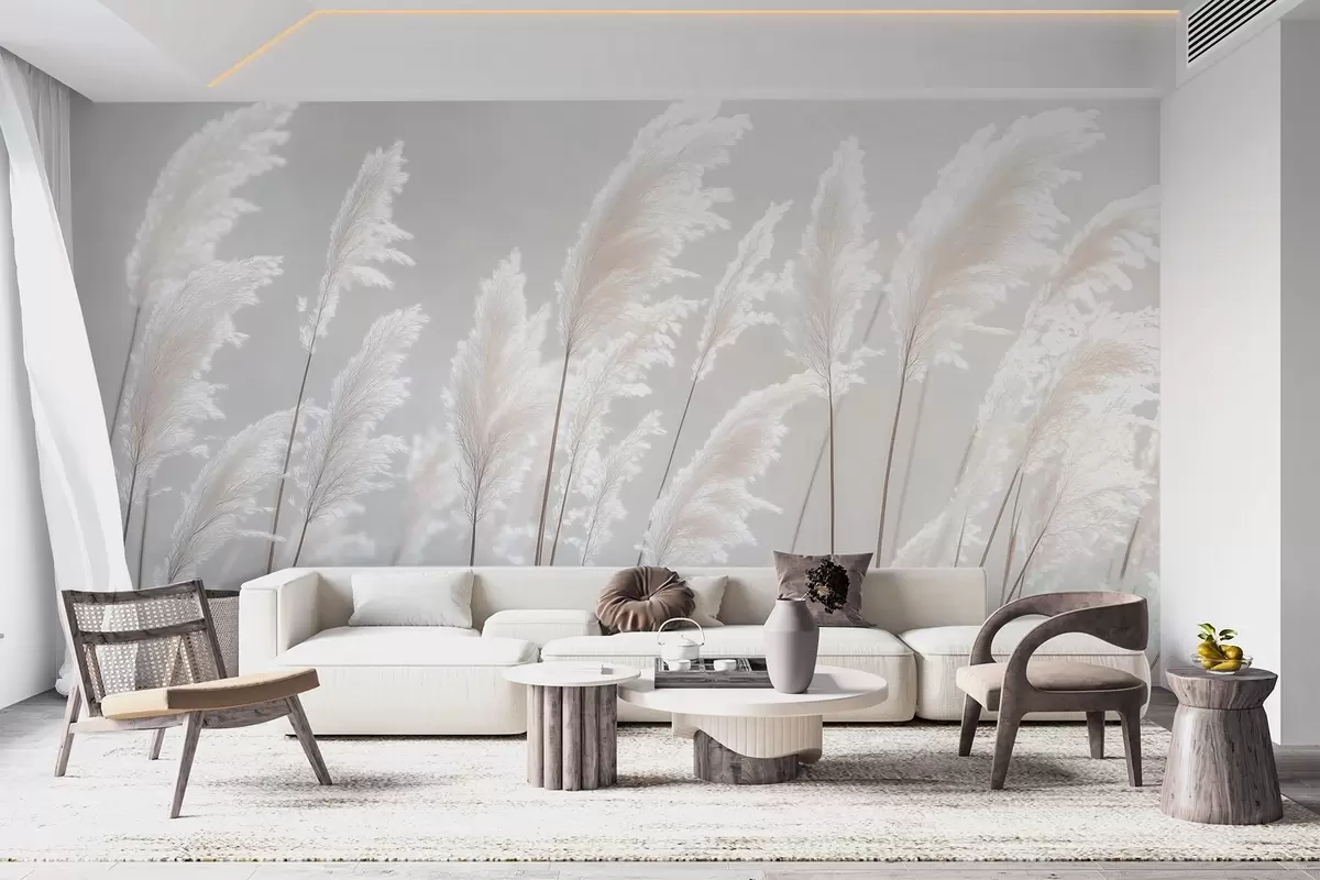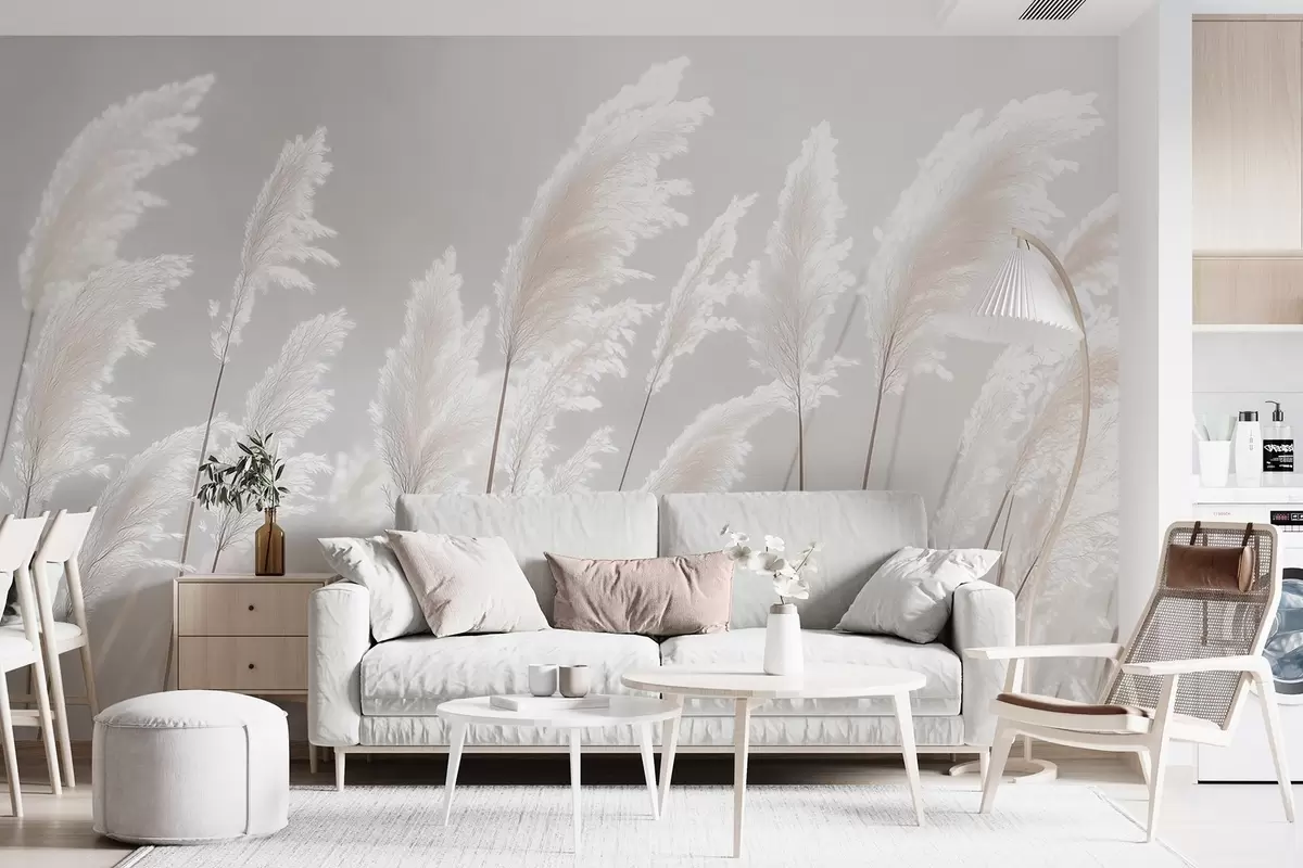 Τοιχογραφίες Απαλό λευκό χόρτο πάμπας στο απαλό φως του πρωινού Nr. w09717
