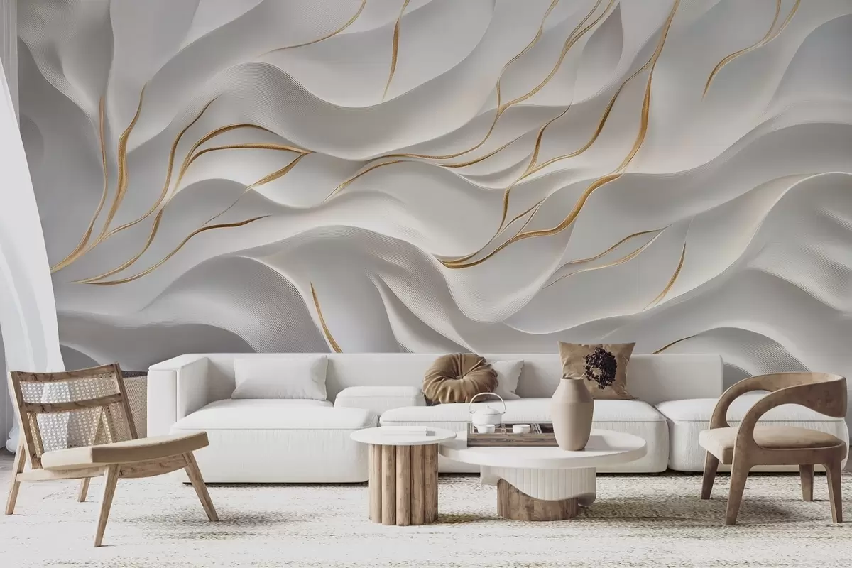 Τοιχογραφίες Γκρι ανάγλυφα κύματα με κίτρινες πινελιές Nr. w09724