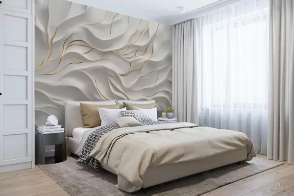 Τοιχογραφίες Γκρι ανάγλυφα κύματα με κίτρινες πινελιές Nr. w09724