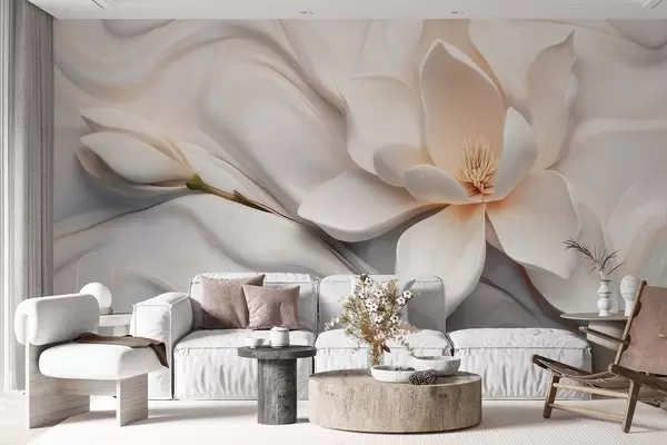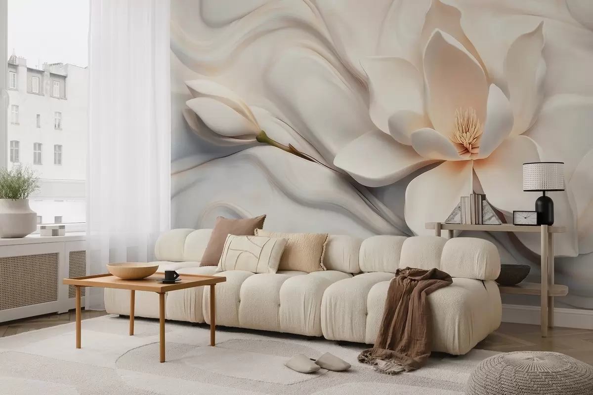 Τοιχογραφίες Τρισδιάστατη λευκή μανόλια με ανάγλυφη απομίμηση μαρμάρινης υφής Nr. w09729