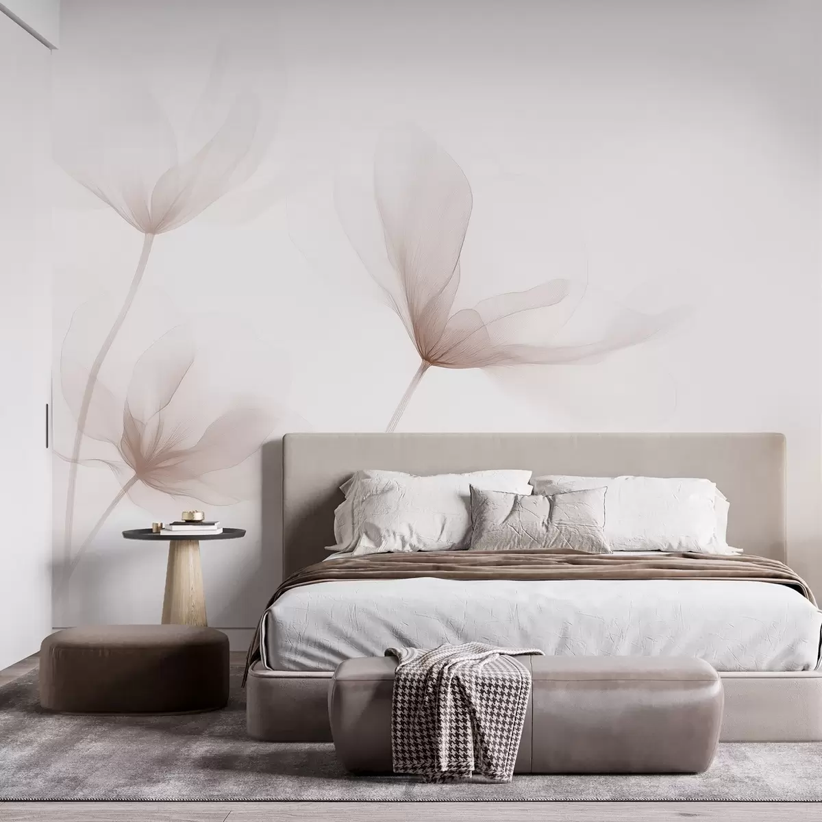 Τοιχογραφίες Αέρινα μπεζ λουλούδια σε μινιμαλιστικό ελαφρύ στυλ Nr. w09734