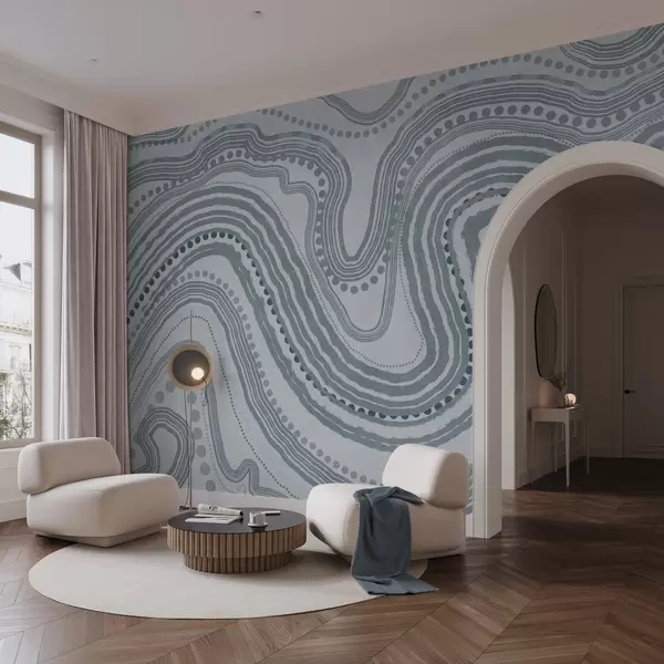 Τοιχογραφίες Αφηρημένες μπλε κυματιστές γραμμές και κουκκίδες, μοντέρνα τέχνη με υφή Nr. w09747v3