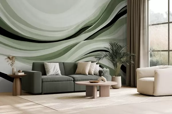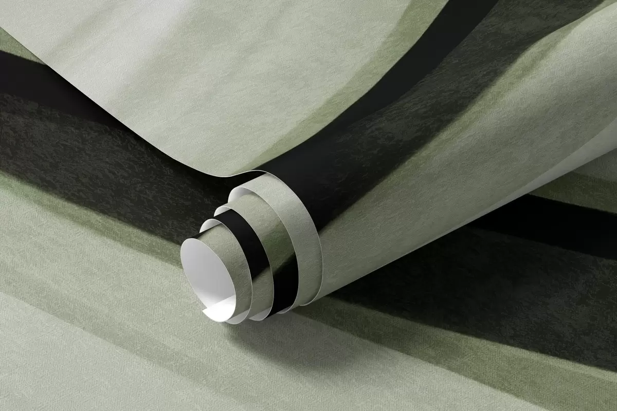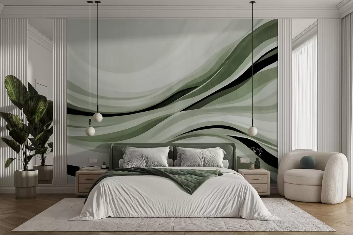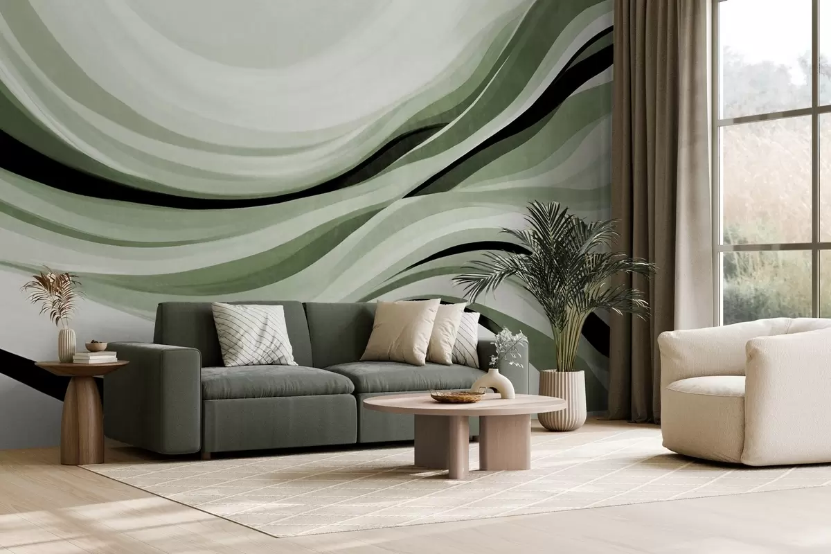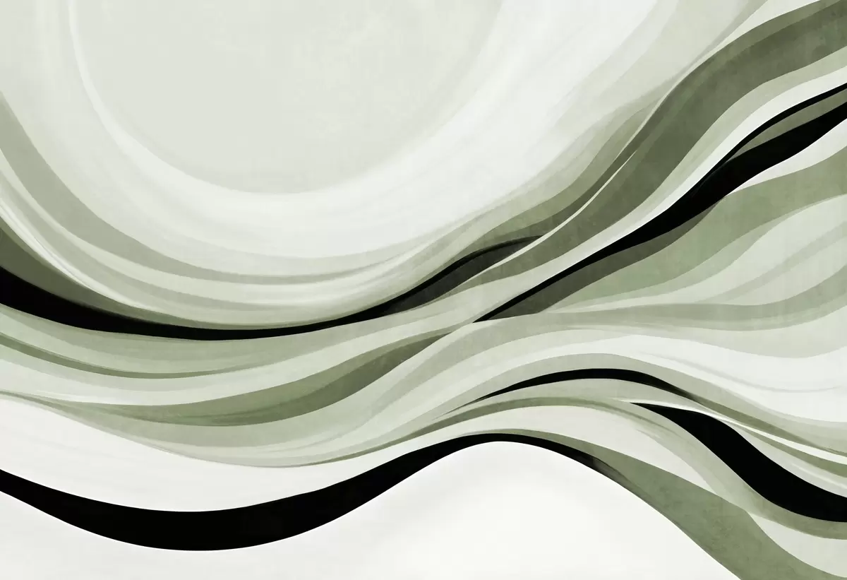 Τοιχογραφίες Αφηρημένες κυματιστές γραμμές σε αποχρώσεις του πράσινου και του μαύρου σε ανοιχτό φόντο, τέχνη με υφή Nr. w09748v1