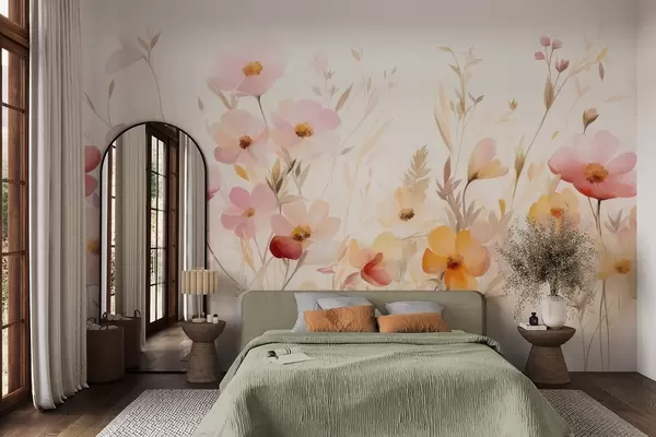 τοιχογραφίες Αφηρημένο πεδίο αγριολούλουδων σε παστέλ αποχρώσεις, στυλ ζωγραφικής με ακουαρέλα w09757