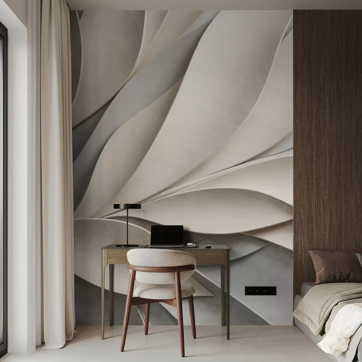 Τοιχογραφίες Αφηρημένα φύλλα σε μπεζ και γκρι χρώμα, μοντέρνα τέχνη με υφή Nr. w09769