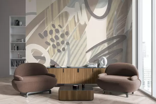 Τοιχογραφίες Αφηρημένο μοτίβο με υφή, που περιλαμβάνει οργανικά σχήματα, μουντζούρες και κουκκίδες σε απαλά παστέλ χρώματα Nr. w09774