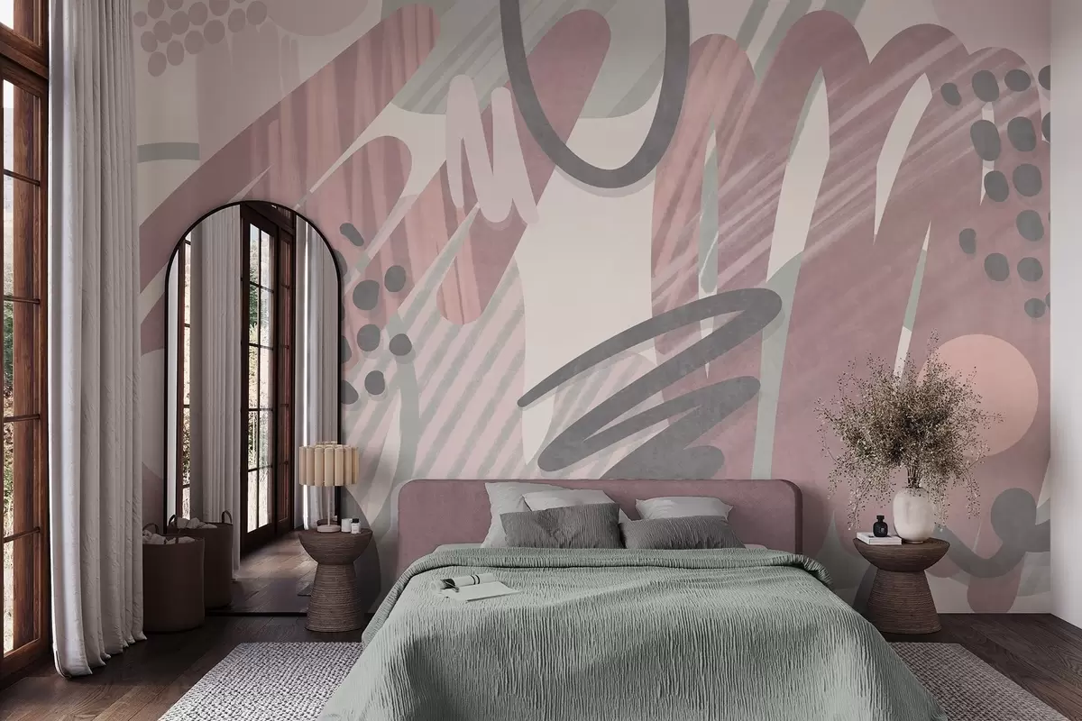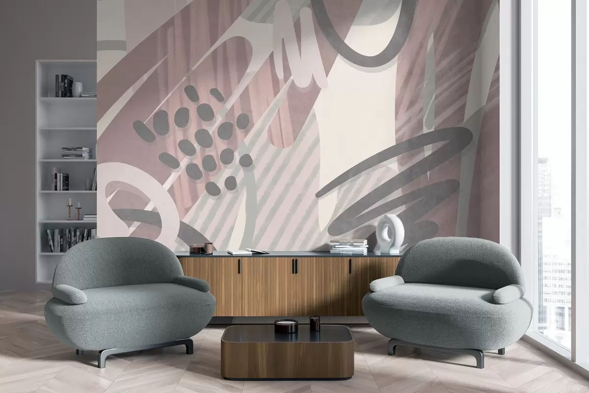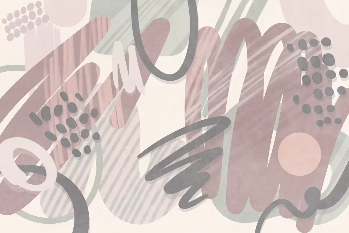 Τοιχογραφίες Αφηρημένο μοτίβο με υφή, που περιλαμβάνει οργανικά σχήματα, μουντζούρες και κουκκίδες σε απαλά παστέλ χρώματα Nr. w09774v1