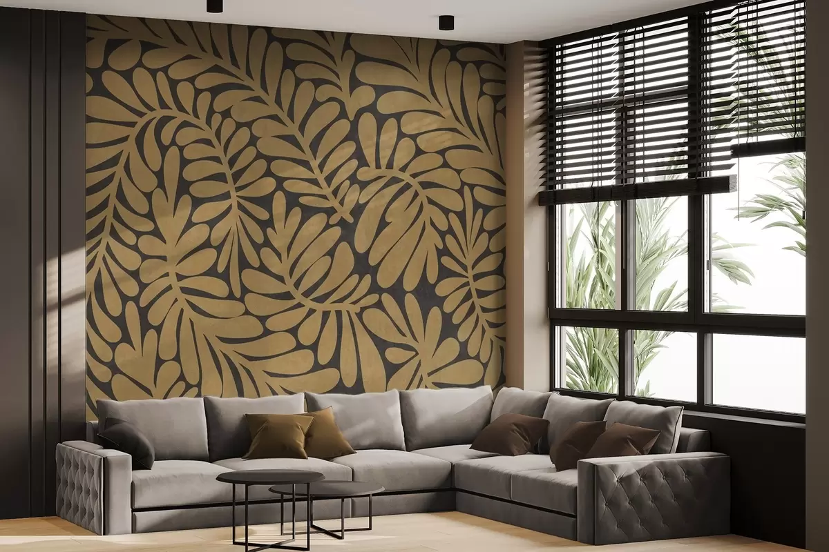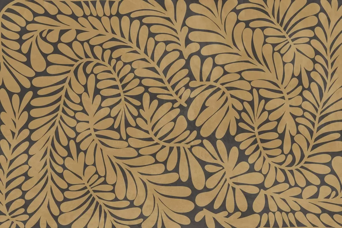Τοιχογραφίες Στυλιζαρισμένα φύλλα σε κίτρινο χρώμα μουστάρδας πάνω σε σκούρο γκρι φόντο, έργο τέχνης με υφή Nr. w09775