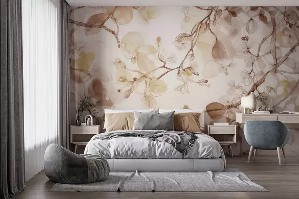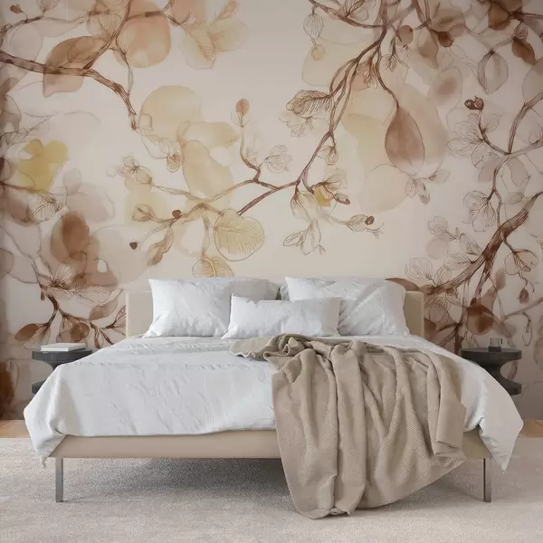 Τοιχογραφίες Αέρινα κρεμαστά κλαδιά σε μπεζ αποχρώσεις, σε στυλ ακουαρέλας Nr. w09795