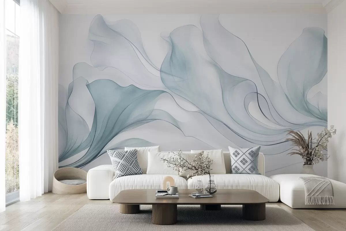 Τοιχογραφίες Αφηρημένη, ρευστή υφή σε αποχρώσεις του μπλε με λεπτές γραμμές Nr. w09815v1