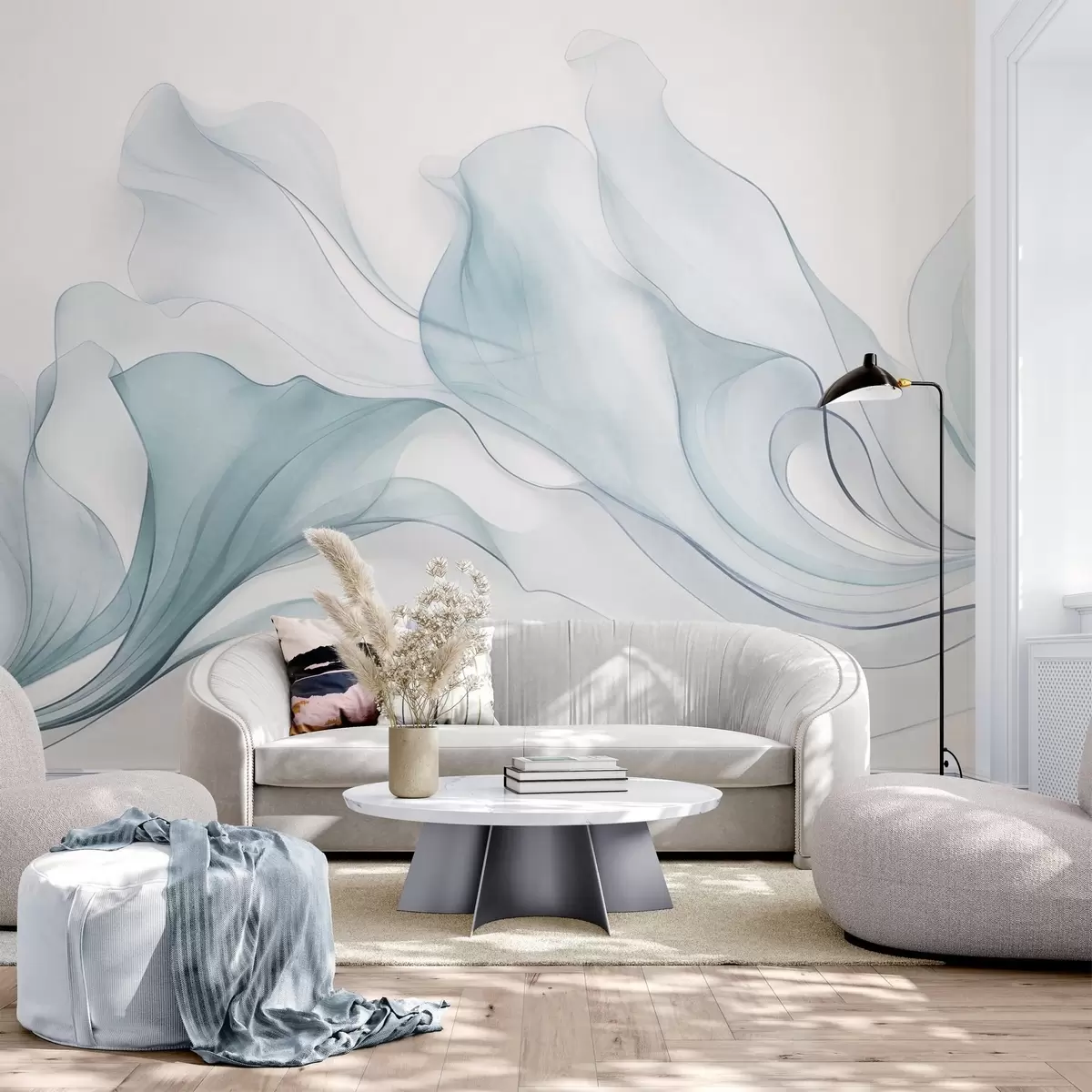 Τοιχογραφίες Αφηρημένη, ρευστή υφή σε αποχρώσεις του μπλε με λεπτές γραμμές Nr. w09815v1